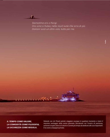 Volando concon Jet Jet Privati potrete viaggiare ovunque in qualsiasi momento e trarre il il Volando Privati potrete viaggiare ovunque in qualsiasi momento e trarre massimo vantaggio della vostra giornata. Deciderete voi voi l’orario di partenza, massimo vantaggio della vostra giornata. Deciderete l’orario di partenza, eviterete lunghe attese di check-in e avrete più più tempo da dedicare allealle cosecose importanti. eviterete lunghe attese di check-in e avrete tempo da dedicare importanti. È laÈvostra compagnia privata. la vostra compagnia privata.