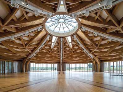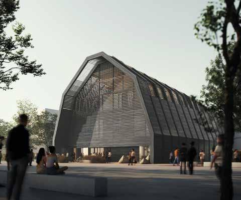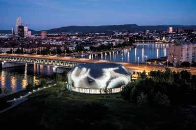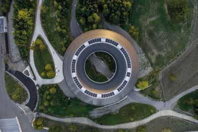 Above and left: the Nordic Pavilion for Expo 2025 in Osaka. Above: the circular Novartis Pavilion in Basle. Below, left, the Towers on the OpenZone scientific campus near Milan’s Parco Nord. Page to side, clockwise: the Portrait Hotel in Milan; the San Barbato Pavilion in Basilicata, a structure intended for fairs and events; the Teseo collection designed for Roda comprises table and chairs in teak slats sewn together with cord; the Pulcina cafetiere, designed for Alessi; Lana by Antrax, a modular radiator in 100% recyclable aluminium (with Tolomeo lamp in the foreground)