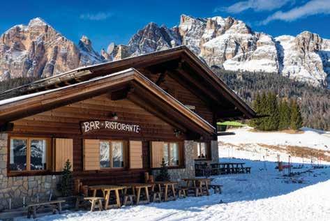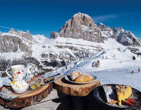 To savour an unforgettable taste experience, head to one of the many mountain huts surrounded by the most stunning Dolomite scenery. A few must-tries: Rifugio Lagazuoi at 2,752 metres, reached via the Falzarego Pass cable car; Capanna Ra Valles (2,475 m) in the heart of the Tofane, accessed via the Freccia nel Cielo cable car; Rifugio Faloria at 2,123 metres, right at the top of the lift departing from Cortina’s town centre; and Rifugio Scoiattoli, on the Lagazuoi 5 Torri Giau ski slopes. In the same area lies another beloved hut: Rifugio Averau, reachable by chairlift from Passo Giau (Fedare). At these and other mountain refuges above Cortina, surrounded by awe-inspiring peaks, you can enjoy local delicacies paired with fine wines. After lunch, relax on the terrace under the winter sun.