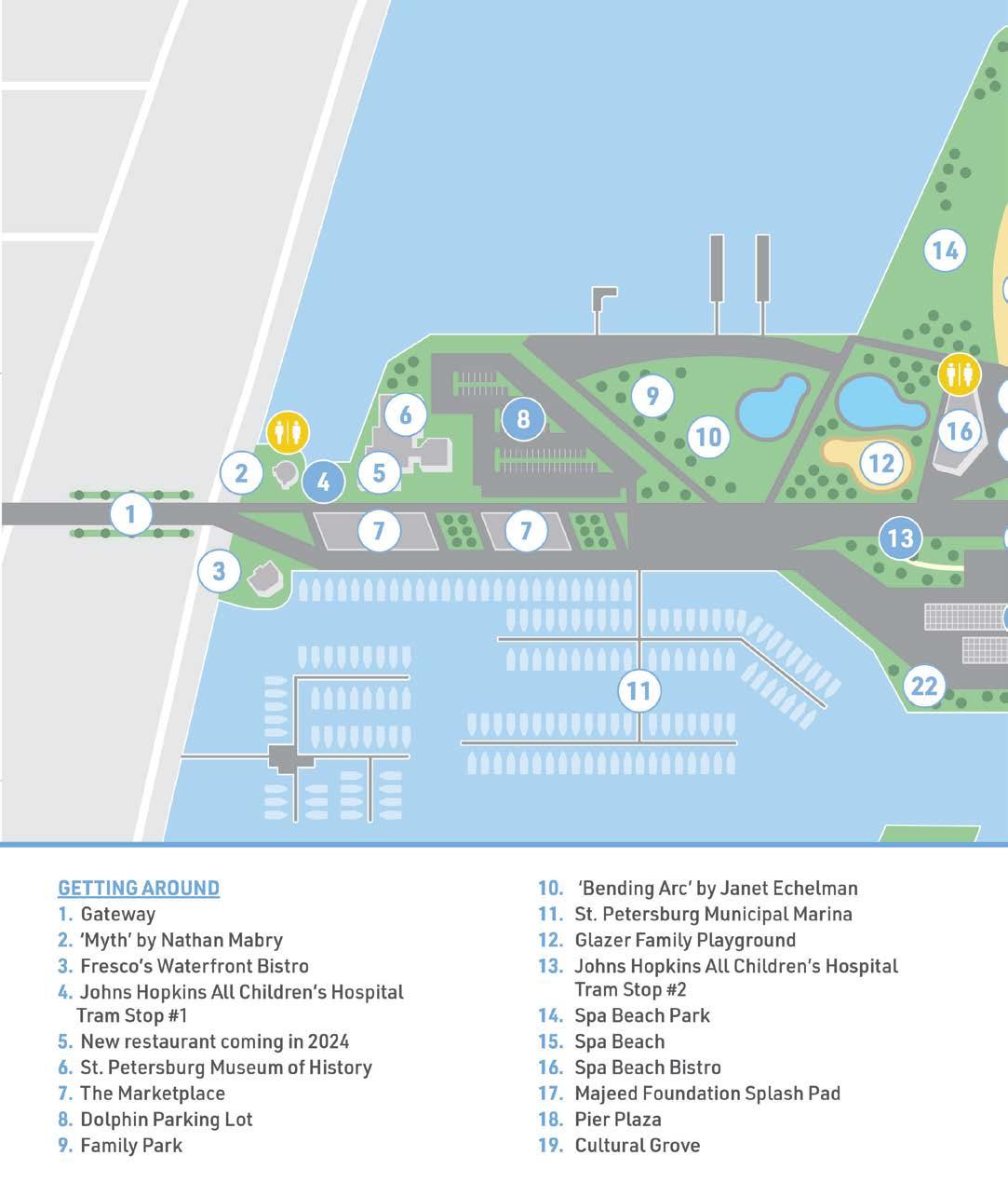 It is not an exaggeration to say that the St. Pete Pier is an entirely new model for waterfront cities, an example of urban infrastructure without precedent. Redefining the capabilities and features of a modern pier, the Pier is an extension of St. Pete’s bustling city center, offering a picturesque urban beach area, a vast, designforward children’s playground, variety of dining spots, marketplace with local vendors, tree laden walkways, an ecotourism center and so much more. From children to seniors, nature lovers to art enthusiasts, fishermen to foodies – the St. Pete Pier has something for everyone.
