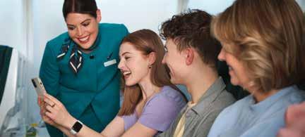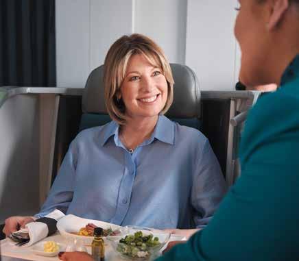 Upgrade to Business Class and enjoy some rest en route with super comfy seats that recline to a fully lieflat 6½-foot bed. A seat width of 22 inches means there’s plenty of room to stretch out in all directions. You also have access to 120 hours of the latest films, box sets, documentaries and more, with a 16-inch multitouch HD Panasonic screen and noise-cancelling headphones as standard.