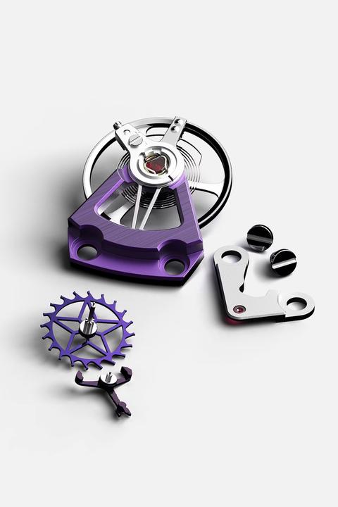 While the dual-escapement movement hints at high-complication territory, the case material and, crucially, the strap impart a distinctively sporty vibe whilst also retaining the ability to be - perhaps slightly impertinently - worn in more formal settings Crafted from a fusion of leather and rubber, the strap's top element mirrors the violet tones with an embossed "fabric" texture, while the back embraces black rubber