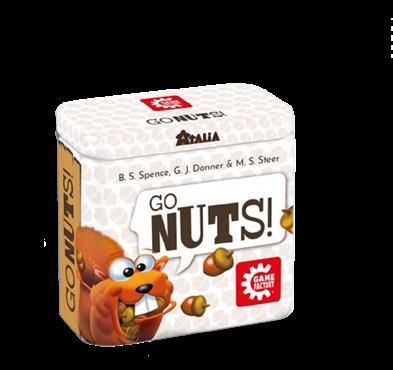 GO NUTS! , un jeu de Garrett J. Donner, Brian S. Spence et Michael S. Steer, illustré par Michelle Albano et Sam Ward, édité par Game Factory (2023), pour 2 à dès 8 ans.