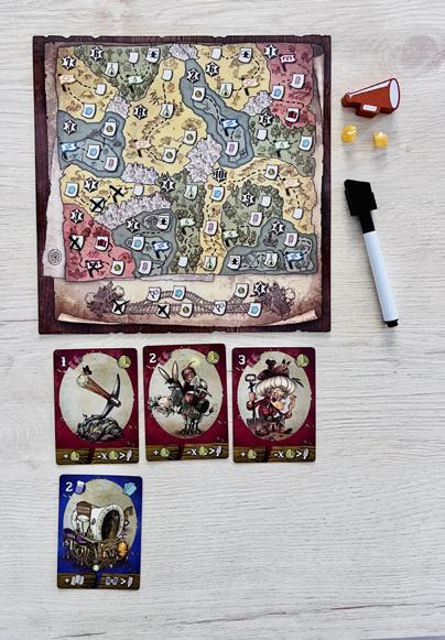 Le dragon vaincu, il ne reste plus aux aventuriers-magiciens qu’à se partager le trésor. Qui obtiendra la plus grosse part du butin ? Placés au centre d’un plateau linéaire, les joueurs tentent chaque tour d’être aux deux premières places pour récolter quelques pièces d’or ; le premier en totalisant 25 gagne la partie. à la manière d’un Cash & Guns , les magiciens (ou sorcier, la règle ne se décide pas et se permet même de changer le nom du titre) ciblent simultanément un adversaire pour lui faire subir les effets d’un des quatre sorts disponibles pour le tour, en reproduisant la forme de main illustrée sur leurs cartes. Les effets avancent