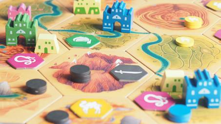 les assassins sont liés au murshid, la cavalerie et les soldats d’élite au calife, quelques troupes spécialisées au chef de guerre et un meilleur contrôle sur les mercenaires au nomade. Un joueur qui achète des cartes correspondant à son personnage les paye à moitié prix ; en revanche, s’il achète des cartes liées à un adversaire, c’est à ce dernier qu’il en verse le coût. Dans ce système qui encourage, lui aussi, le bénéfice mutuel, le sultan possède son propre marché, où il peut écouler, pour son propre compte, toutes les cartes qu’il propose.