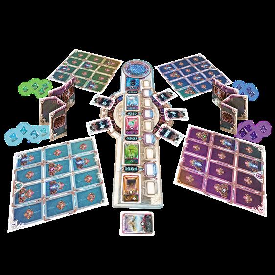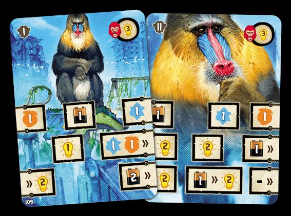 Deux stratégies se dessinent alors : la première consiste à cibler essentiellement des cartes du tiers 2, valant deux ou trois points et appelant cinq à huit ressources variées en couleurs. Ces cartes deviennent plus accessibles dès le milieu de partie tandis qu’au début, il convient de bien gérer les dix jetons que l’on peut accumuler. La seconde, plus verticale, consiste à s’appuyer sur les groupes de couleurs et leurs synergies pour cibler dès que possible des cartes du tiers 3. à ce jeu-là, le chaînage des cartes est déterminant pour prioriser les acquisitions de cartes à points et réduire le coût des achats suivants. C’est ainsi que la construction de son tableau personnel sert à avancer au score !