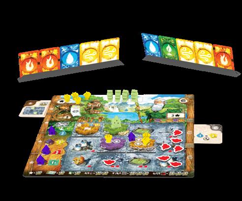 ou reculent les pions des joueurs ou provoquent des échanges de pièces d’or, l’or ne faisant que s’accumuler au fil des manches. Un sursaut de magie sauvage peut également survenir si deux joueurs se ciblent mutuellement avec le même sort, modifiant son effet par le premier de la pioche. Reprenant les sorts mythiques issus du jeu de rôle ancestral, la référence s’arrête ici, car la pratique est tout sauf contrôlable. D’une part, l’ordre de résolution des sorts influe beaucoup sur le résultat final obtenu, invalidant, voire aggravant, une situation mûrement réfléchie. Et d’autre part, les sursauts apparaissent trop souvent pour maîtriser quoi que ce soit, et ce même si les joueurs s’allient ouvertement contre un adversaire. Il en résulte un jeu chaotique, qui plaira en fin de soirée ou entre joueurs taquins, mais manque le coche d’un titre de référence pour les aficionados du jeu de rôle papier.
