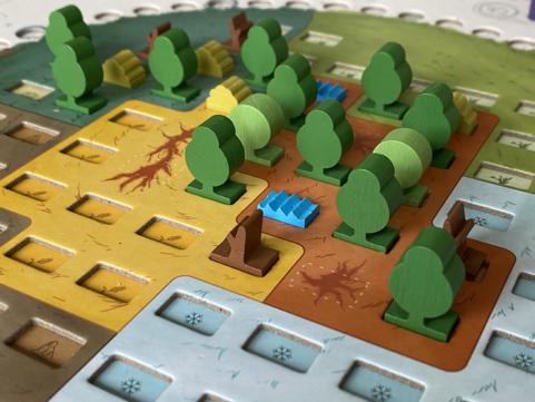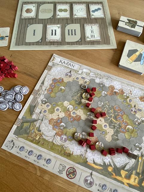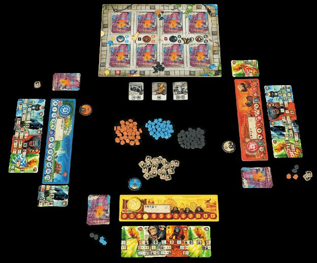 Pour terminer, le plateau modulaire promet une rejouabilité infinie, mais ce n’est pas cet aspect qu’a privilégié l’auteur. D’ailleurs, avant d’adopter la variante d’origine qui invite les participants à construire euxmêmes le plateau, il faut bien en maîtriser les enjeux. L’idée a été de s’éloigner des wargames traditionnels dans lesquels la composition du terrain influence les déplacements et les combats. La difficulté de défendre un bâtiment construit ou un lieu important impose, ici, des alliances, certaines plus naturelles que d’autres, qui reposent sur l’intrication des pouvoirs de chaque faction. Là encore, on se retrouve avec ce désir de bénéfice mutuel très agréable à vivre dans un jeu d’affrontement somptueux, qui privilégie tactique et stratégie.