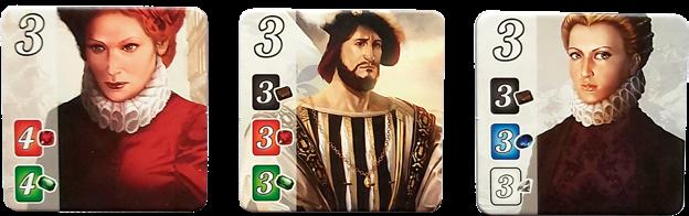 Un premier réflexe peut être de se tourner vers les nobles. Ces tuiles valent trois points de victoire chacune et s’acquièrent dès que l’on a les cartes demandées dans son tableau. Si cela est en phase avec le thème du jeu, cette tactique s’avère en fait assez lente, puisqu’elle demande d’acquérir huit ou neuf cartes pour trois points. Elle reste un atout si les adversaires consolident leurs moteurs de ressources et si plusieurs nobles appellent les mêmes couleurs. à deux et trois joueurs, ils ne permettent pas d’assurer une avance confortable au score. à quatre joueurs, cette stratégie est rapidement inutile si plusieurs adversaires se font concurrence. D’évidence, les points des nobles sont à intégrer dans une autre stratégie qu’ils viennent compléter si l’opportunité se présente. En cela, ils influencent la valeur des cartes disponibles à l’achat et les couleurs à acquérir en priorité.