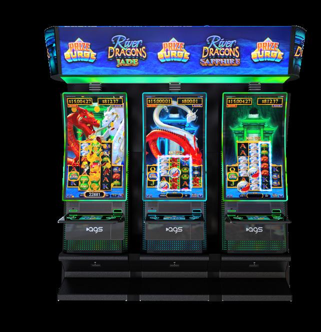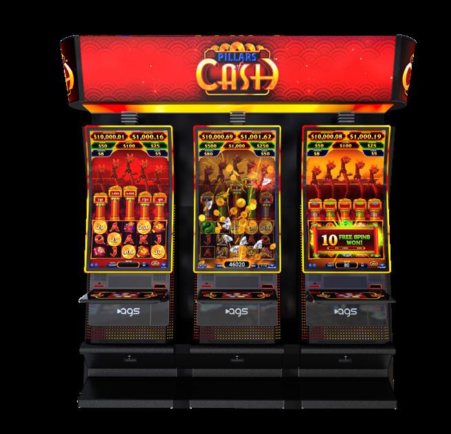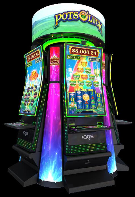Goodbye, middle seat. The 2x2 pill, AGS’ most space-efficient configuration, requires minimal footprint and allows players to game at a more intimate level. The linked overhead digital sign is seen at 360-degree and displays progressive jackpot meters.