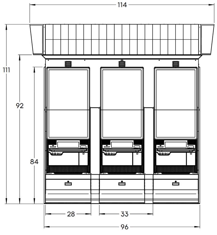 Winning is better with friends. Attract customers from across the floor with a cinematic display of side-by-side machines in a 3x1 or 3x2 configuration. A large digital overhead sign displaying progressive jackpot meters is seen from every angle.