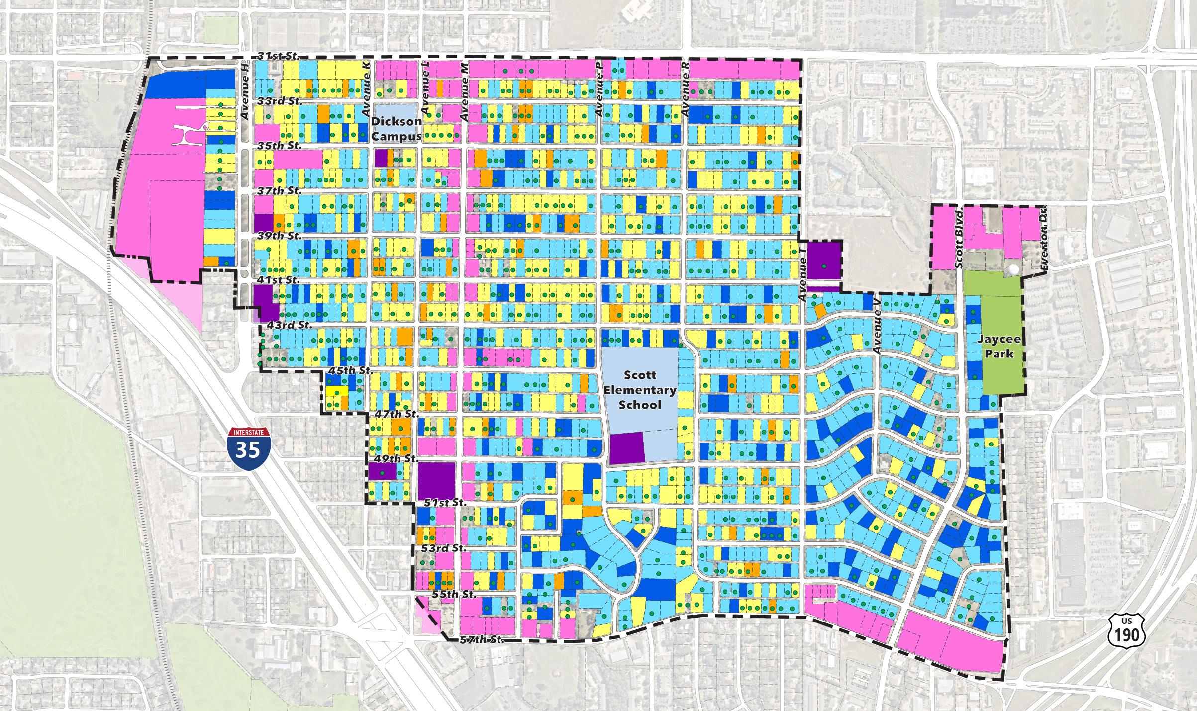 Avenue P and 43rd Street are roads that cross the entire plan area, making them important to both vehicular and pedestrian travel. Additionally, Scott Elementary School’s nearby location further emphasizes the need for safe travel along these corridors. Neither street has a contiguous sidewalk and the intersection is absent marked crossing and ADA ramps. These issues should be addressed and the intersection of the two streets should be enhanced to facilitate safe routes to schools.