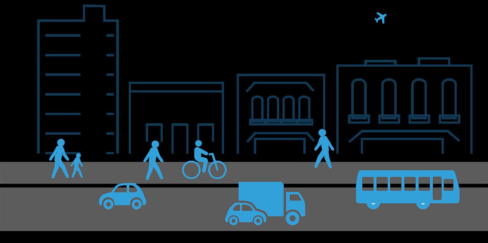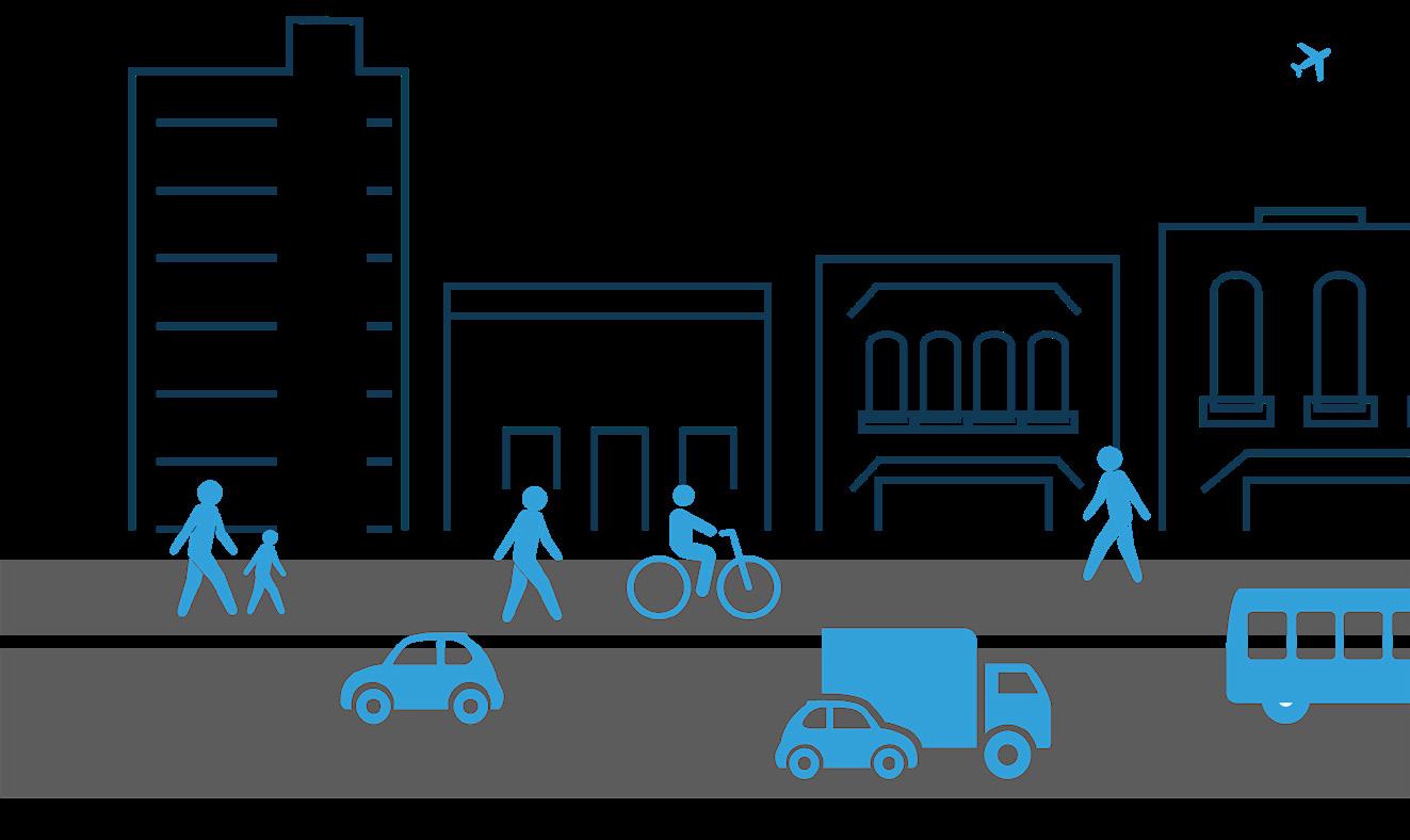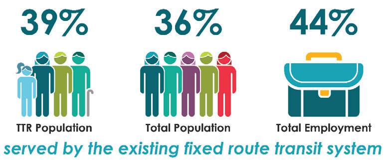 Residential areas, employment/business districts (industrial park), grocery stores, healthcare facilities, education institutions, public service facilities (city hall, library, post office, workforce center, etc.).