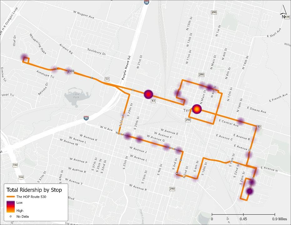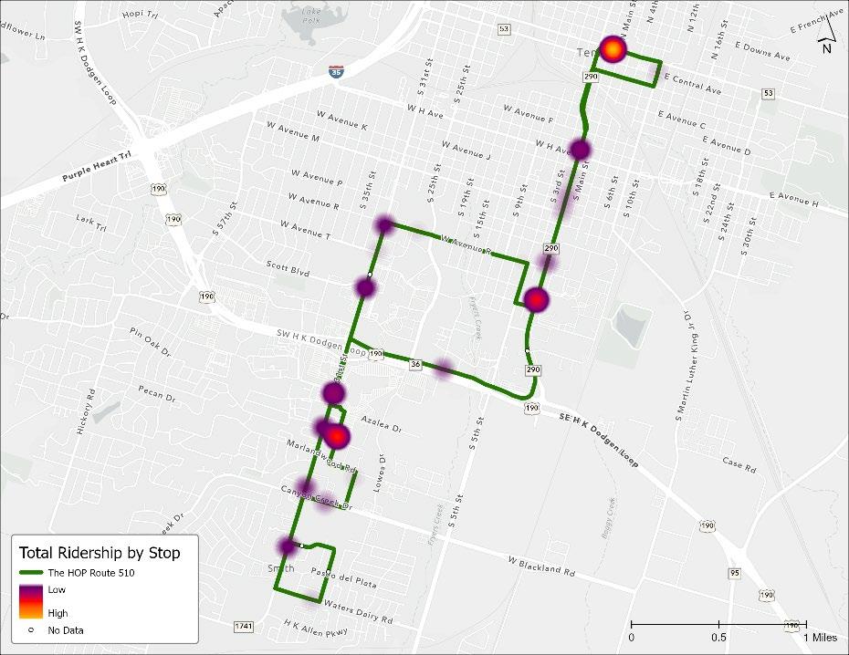 • Getting off of bus at Temple College (route 510) is difficult - 1st Street near Marvin Felder Dr.