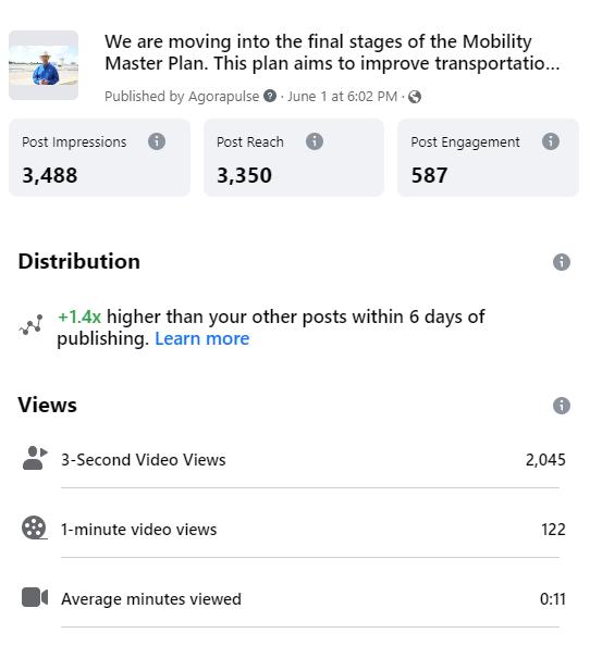Metrics on views of video released online by City of Temple on June 1, 2022