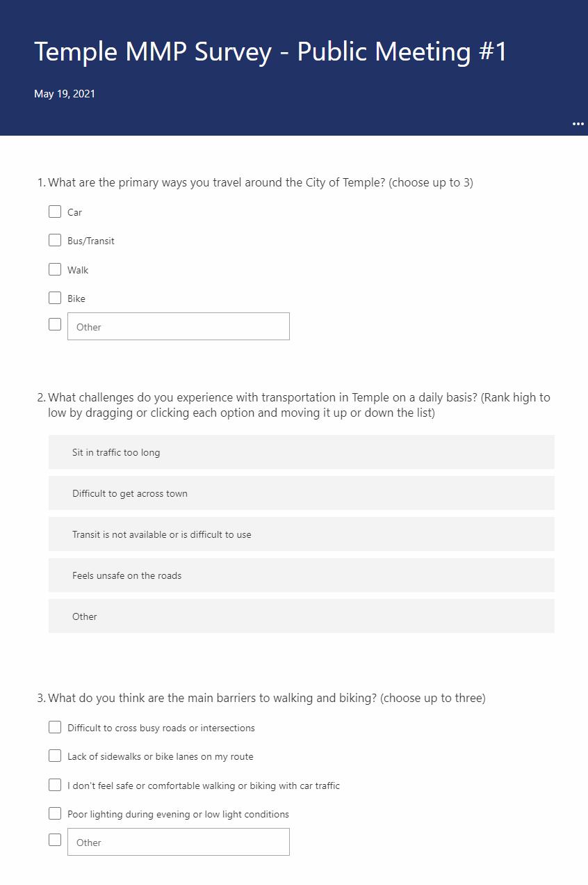 Temple Mobility Master Plan Public Meeting #2 - Survey Responses