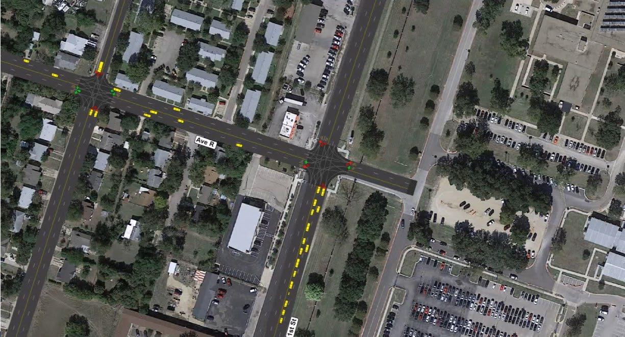 • Recommended roundabout at Old Waco Rd. and W. Adams