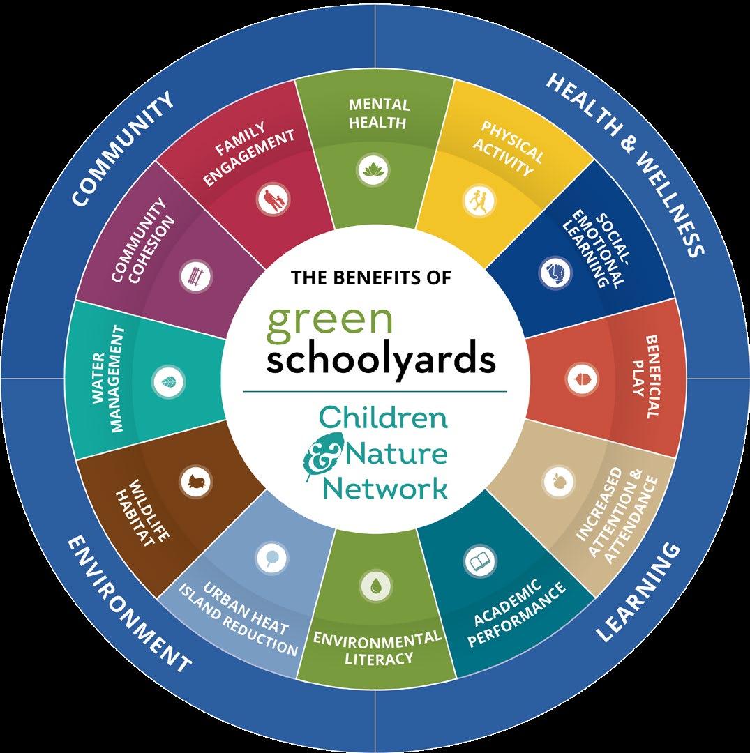 Collectively, this body of research demonstrates the importance of green schoolyards in the overall health and success of children, families, schools, and communities. Since students spend most of their weekday hours in school, greening schoolyards is a vital and logical step to support children’s overall health and well-being.
