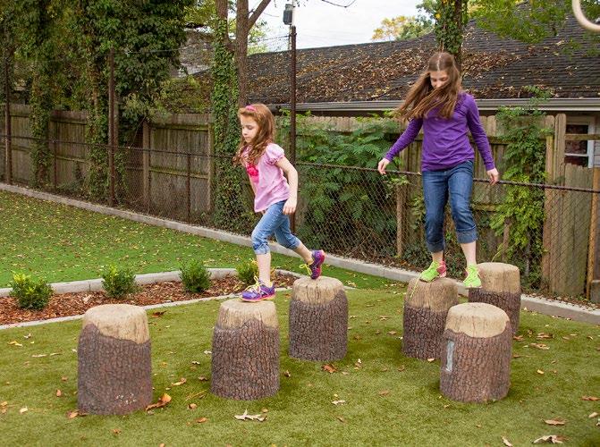 7. Nature play areas. Using natural materials such as logs, sticks, mulch, and leaves, these areas usually include moveable parts that support creative play.
