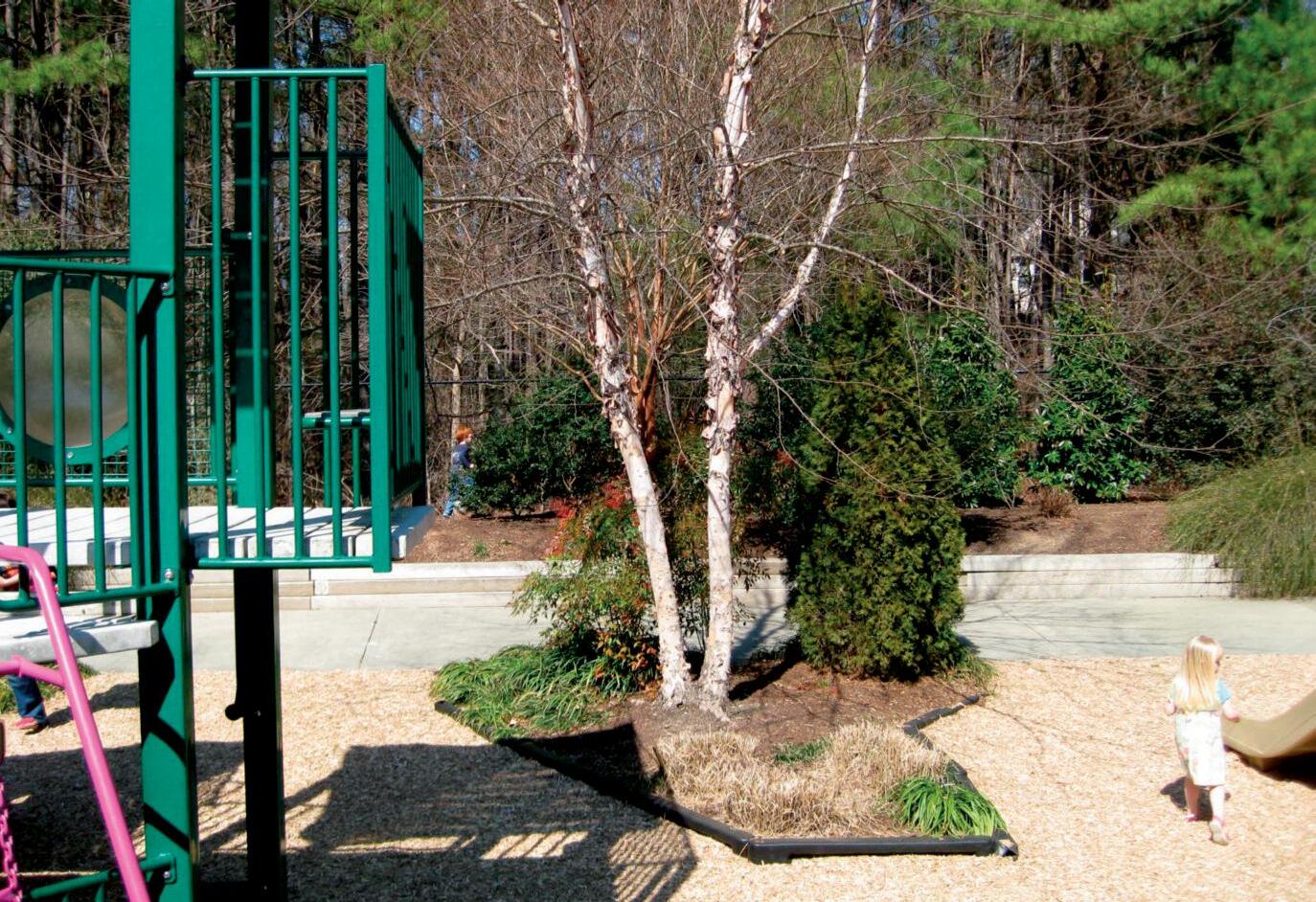 • Trees, shrubs, and flowering perennials increase playground aesthetic appeal, which stimu-