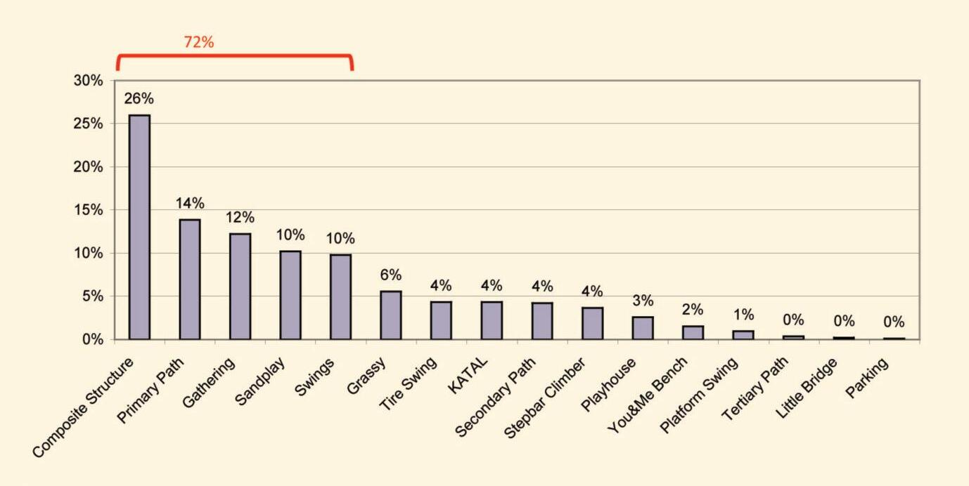 • Play structures are heavily used by children, as demonstrated by NLI behavior mapping studies of actual use of school grounds and community parks designed to high standards of best practice.