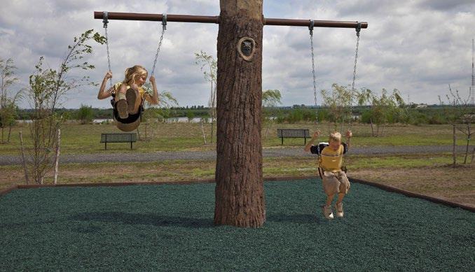 The Americans with Disabilities Act (ADA) is a federal civil rights law that prohibits discrimination on the basis of disability. Public playgrounds are covered under the ADA, such as those owned or operated by units of state or local government (Title II) and places of public accommodation (Title III) like at malls, restaurants, theme parks, fitness centers and resorts. The 2010 ADA Standards for Accessible Design establishes enforceable minimum design standards for public playgrounds and maintenance requirements for the accessible route to accessible play components. The accessibility standards address the complete route of travel to and throughout the recreation space to ensure that users are able to navigate comfortably throughout the entire recreational experience. Surfacing suppliers should provide site owners with detailed information on the installation and maintenance of the surfacing products to comply with the 2010 ADA Standards. While ASTM F1951 provides a specification to determine accessibility of surface systems under and around playground equipment, playground owners should conduct a field test following installation to ensure the surface is compliant with ADA standards. A field inspection includes checking for slope and cross slope with a digital level; openings and changes in level with a tape measure; and firmness and stability with a rotational penetrometer or instrumented surface indenter. (See the sample checklist on pages 55-56.) For more information about site planning, purchasing, and installation to meet ADA guidelines for compliance, refer to the U.S. Access Board technical guide “Surfacing the Accessible Playground: 7 Things Every Playground Owner Should Know About the Accessibility of Their Playground Surfaces” at www.access-board.gov.