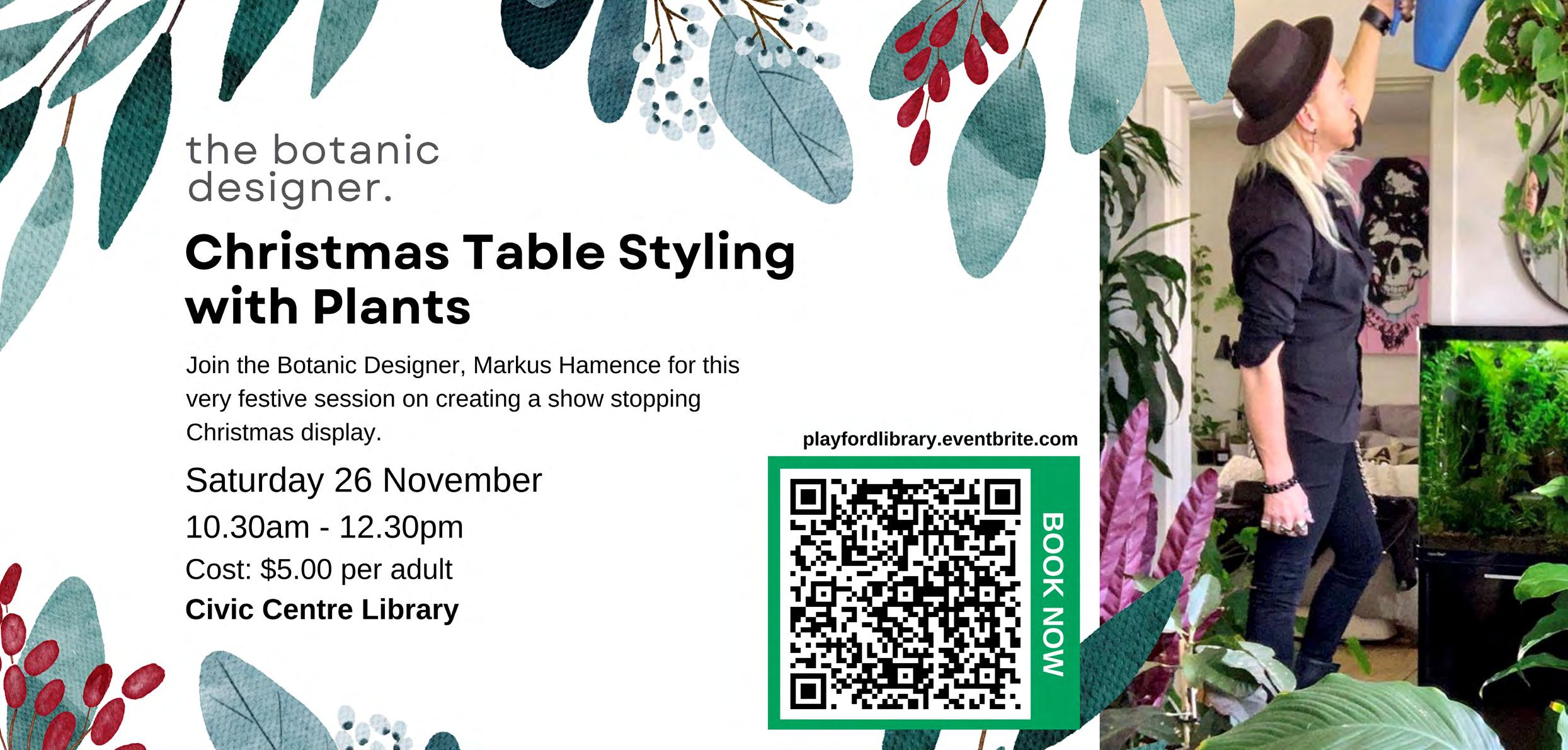 16 Career Workshop Digital Springboard Build skills and techniques through our Career Workshops. You will receive a copy of templates to use. FridayDETAILS:28 October Times: Resume: 10.30am - 12pm Cover Letter: 1 - 2.30pm Cost: Free, bookings essential Civic Centre Library Bookings essential through: playfordlibrary.eventbrite.com OR at the Library Desk Adult Events Adults One on One Tech Help Book into an hour session with one of our special IT staff. They can help you with your computer, phone, emails and more. BookingsTuesdaysDETAILS: available between: 10am - 2pm Stretton Centre Library BookingsFridays available between: 10am - 4pm Cost: Free, bookings essential. Civic Centre Library Come & Try: Make Bath Bombs Learn how to create your own Bath Bombs using different fragrances and colours in this session. You will also take home your creations. SaturdayDETAILS:8 October Time: 11am - 1pm Ages: 16+ years Cost: $5.00 per person Stretton Centre Library Christmas Table Styling with Plants: The Botanic Designer Markus Hamence is The Botanic Designer. He will be visiting to show you how you can wow your friends and family with Xmas indoor plant displays. SaturdayDETAILS:26 November Time: 10.30am - 12.30pm Ages: 18+ years Cost: $5.00 per person Civic Centre Library