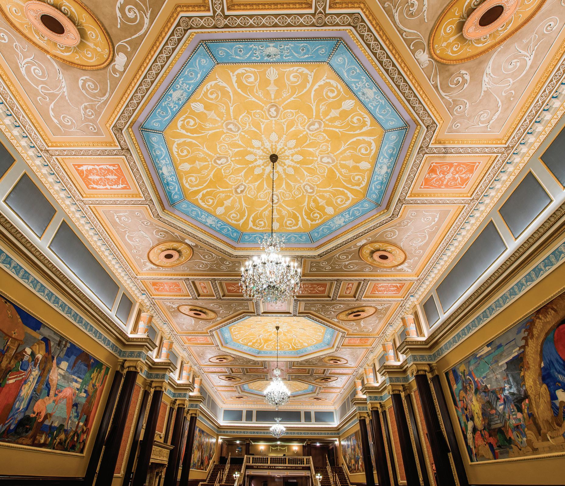 In 1964, the Mimi Ohio Theatre lobby and auditorium were destroyed by fire. When the fledgling Playhouse Square organization restored the spaces in 1982, funding and time constraints made it possible only for the auditorium to be fully restored. Thanks to a gift from the George Gund Foundation, the lobby was re-created in its original splendor in 2016. You can watch a documentary about the project, “Restoring the Legacy,” on Playhouse Square’s YouTube channel.