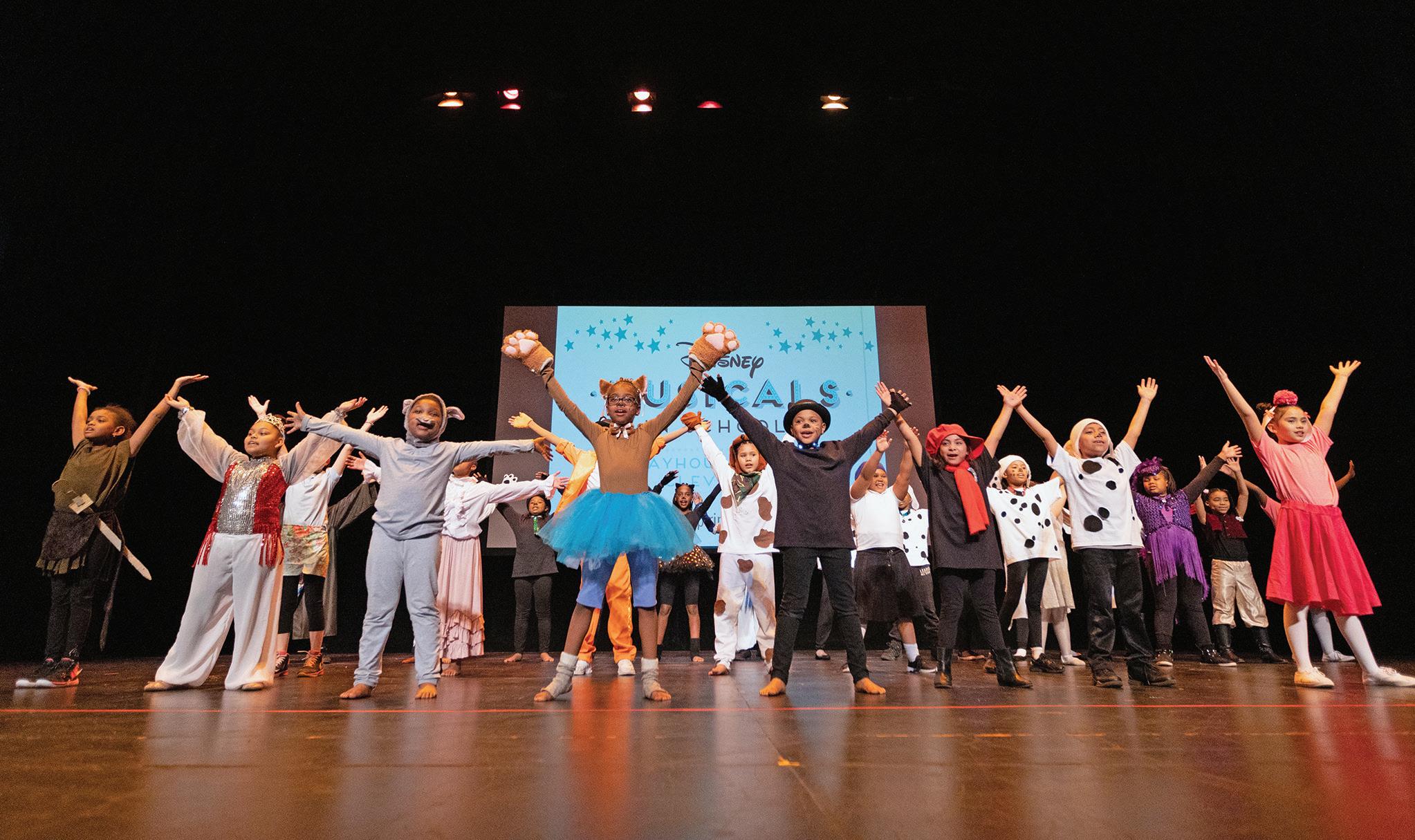 Disney Musicals in Schools, presented by Dee & Jimmy Haslam, is an outreach program that creates sustainable musical theater programs in elementary schools. Each year, four schools are selected from applications from Cuyahoga, Lake and Lorain County elementary schools that have a student poverty level of 50% or higher, bringing arts into areas that are without. These schools receive a 19-week musical theater residency led by Playhouse Square’s professional Teaching Artists, with the goal of providing the necessary training and professional development for the schools to continue the tradition of theater education for years to come.