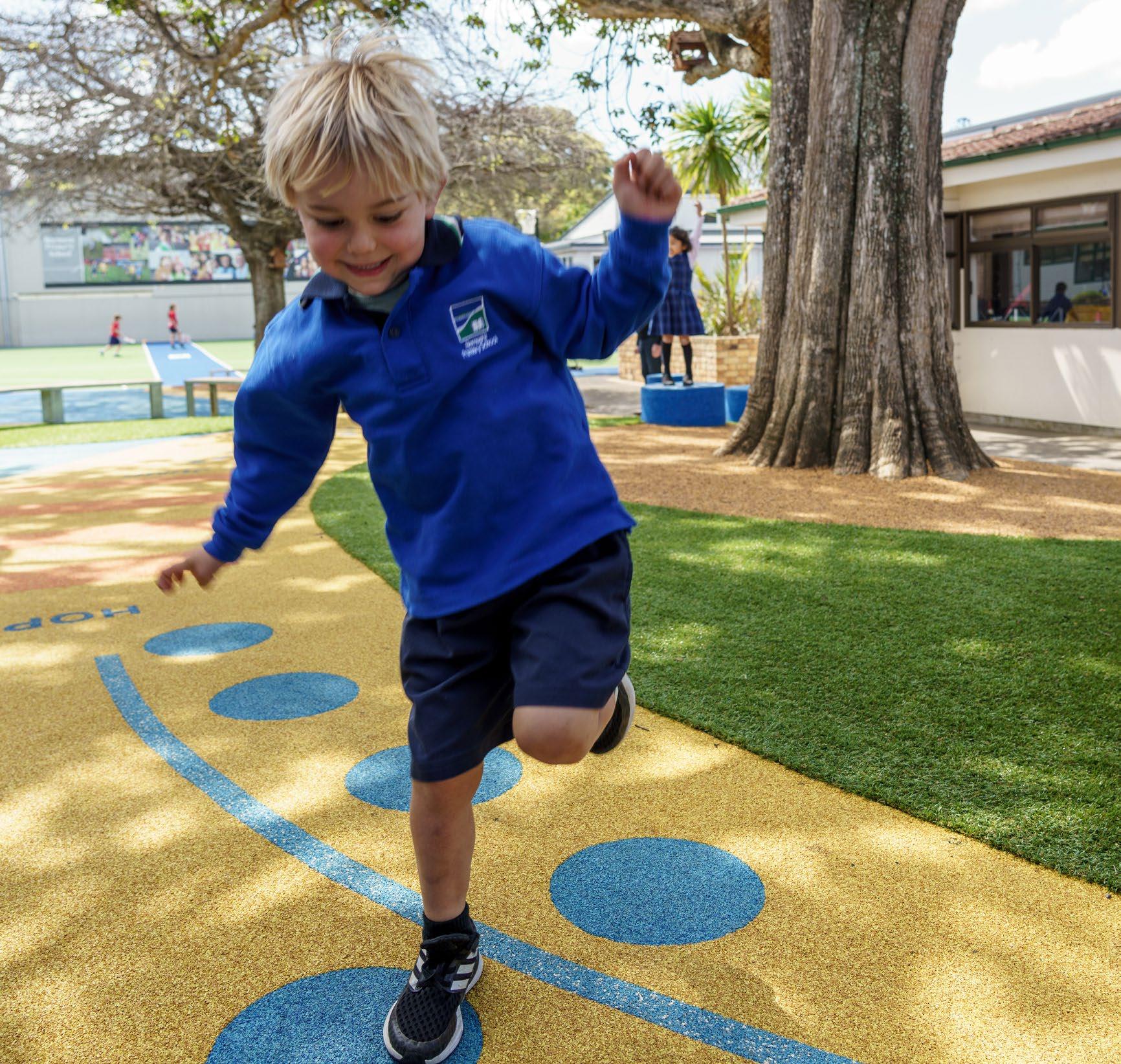 Colourful animals and plants, painted on the surface, are a good way to add fun to an underutilised spot. They can also be incorporated into games, for example, becoming the ‘home base’ in tag and hideand-seek games. Different native leaves/flowers or birds can be painted on the ground to reflect different Whanau groups or syndicates within the school.