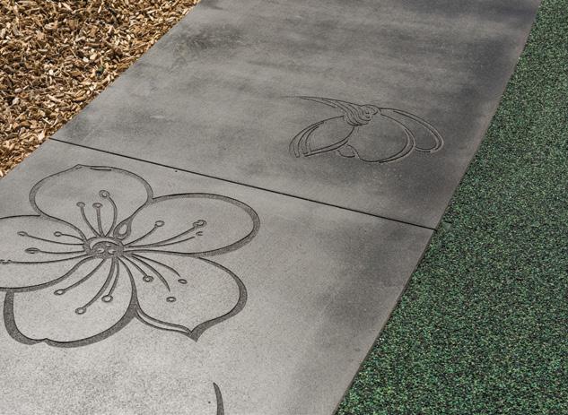 Concrete, asphalt and pavers are ideal surfaces for sport courts, fitness equipment and pathways. As a hard and permanent surface, they provide good traction in wet conditions and can be easily maintained. Additional play value can be added with painted surfacing coatings.