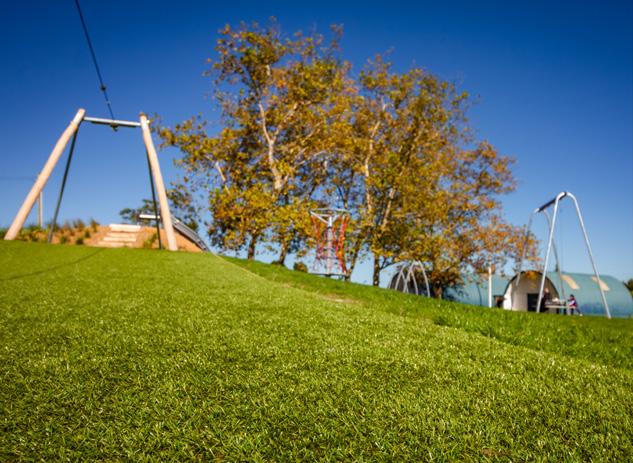 Turf with a shock pad underlay can be used under playground equipment up to 3m depending on depth.
