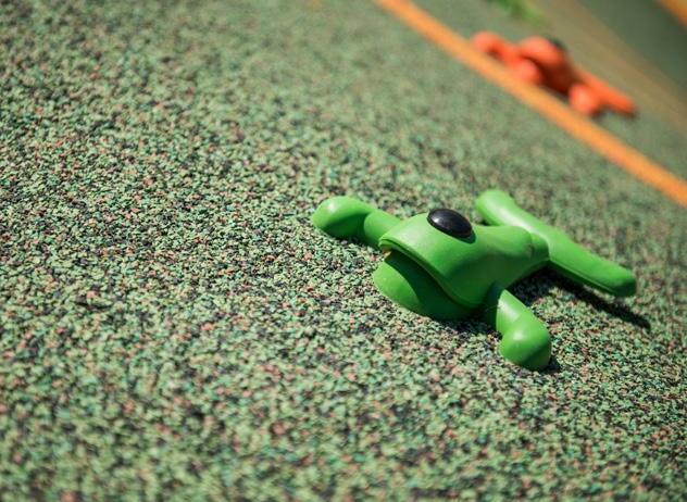 Loose fill materials like pea gravel and small river stones are a low-cost safety surface, but they do tend to travel around a site. If upkeep is not maintained, inconsistencies like mounds and trenches can appear compromising its overall Critical Fall Height (CFH). Furthermore, dust can accumulate in the surface over time and lead to surface compaction and hardening. In modern designed playgrounds, coloured pebbles are often used for their play value rather than as a safety surface solution.