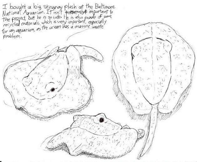 I had not heard of the White Blotched River Stingray before coming to the aquarium, and I instantly fell in love. This stingray inspired a lot of the art I have done for this project and basically became the whole focus of the art I was making.