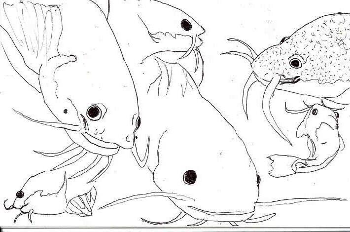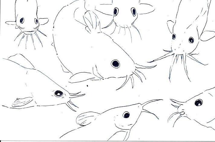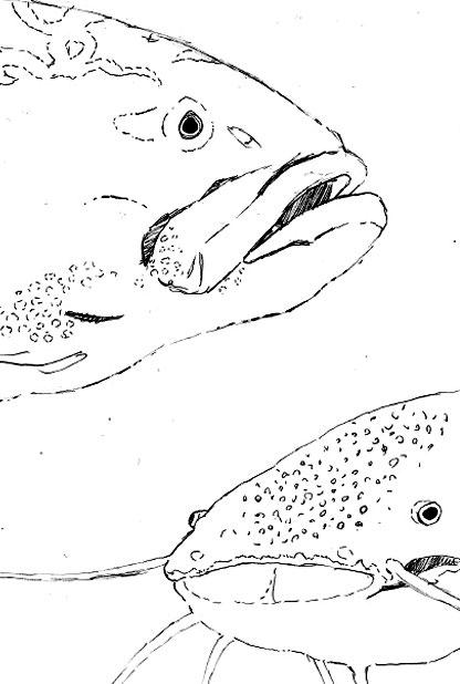 This is a pen drawing I did of a grouper fish and a catfish. I thought it came out really well. I love catfish, and the grouper fish just looked so silly, I had to draw him. I like the fish that look quite silly and dumb, and you will see that throughout the art I have created.