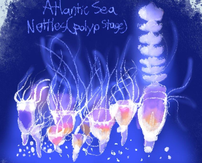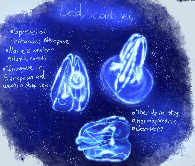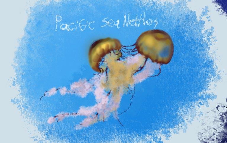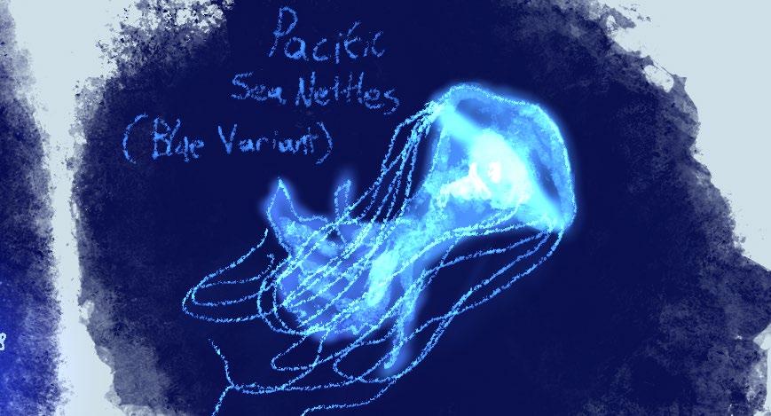 All the art in these pages are from the jelly exhibit. I really liked the jellyfish, especially since most of them were glowing blue. The auarium inspired me to try something new: drawing on an iPad. I thought that getting an iPad would help me creatively, especially because I have not really used screen tablets for drawing. It went quite well I think. I was able to experiment with textures and learning Procreate, which is generally thought to be one of the best digital art programs.