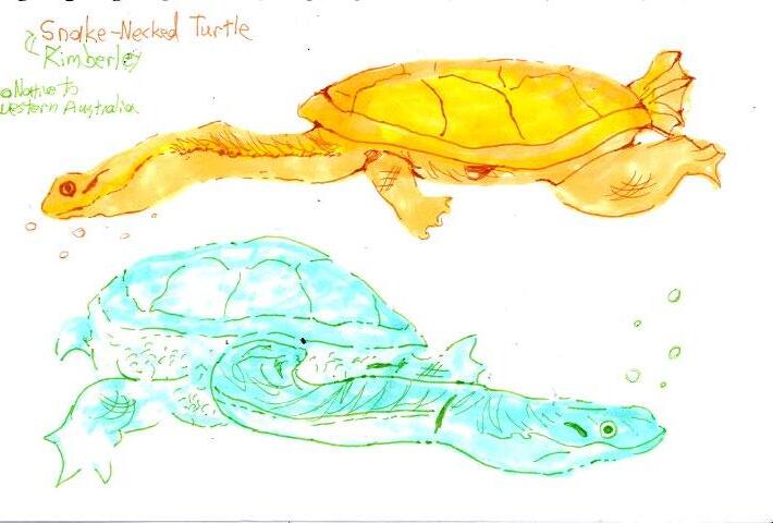 Below is art from the Australian exhibit. These are long necked turtles, which I also thought looked really funny, so I drew them using markers and pens.