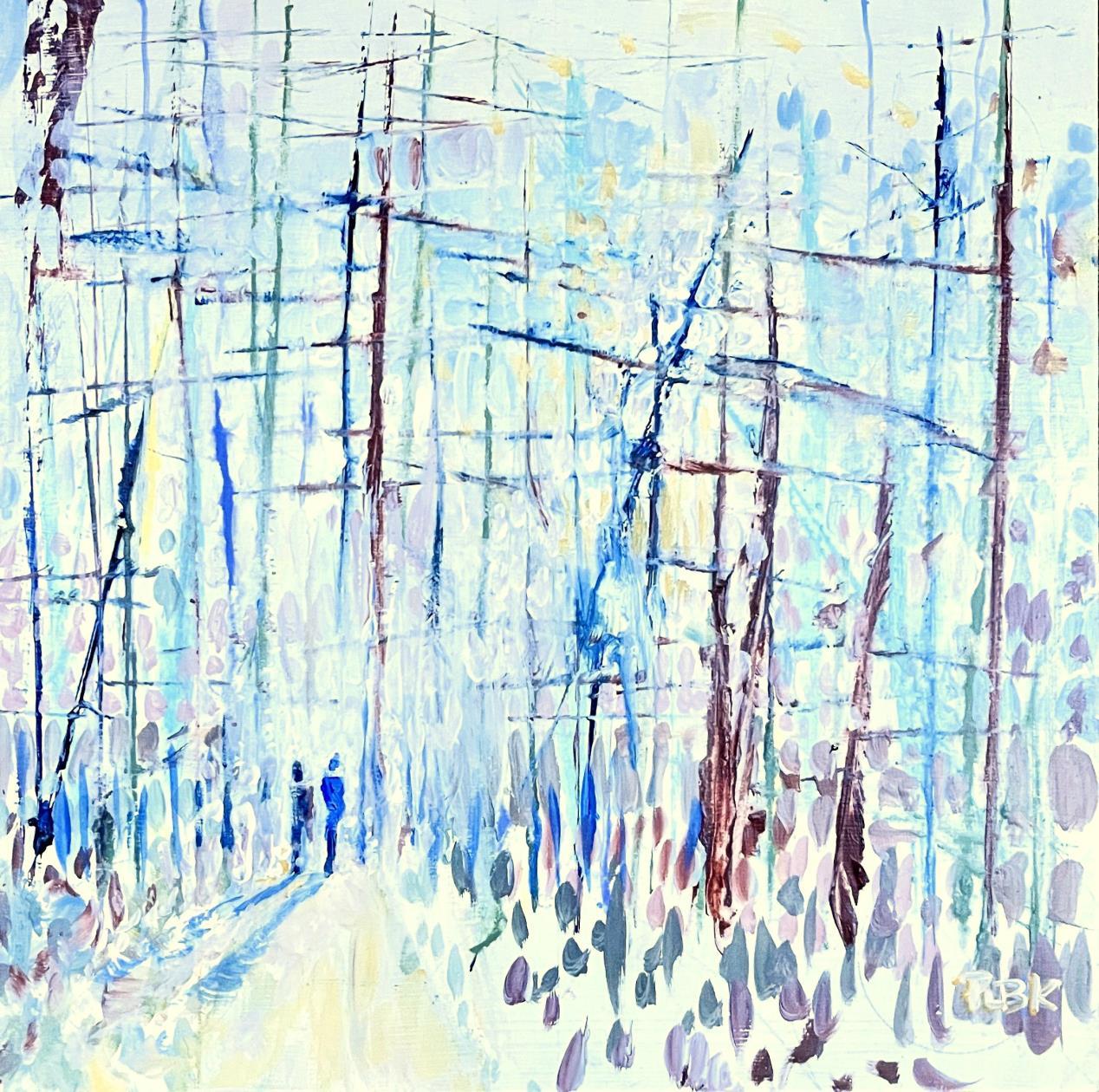 I walk in forests through paint. This abstraction of a forest reminds me of sailboats in a harbour.