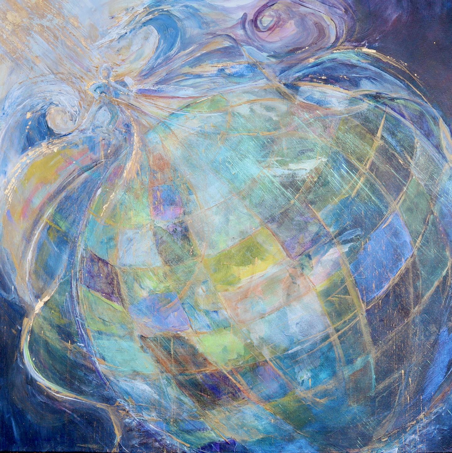 The Angel of the Lord stands above the earth releasing His net around the globe, transmuting the Glory of the Lord through His being, as it cascades around the earth in prismatic colours.