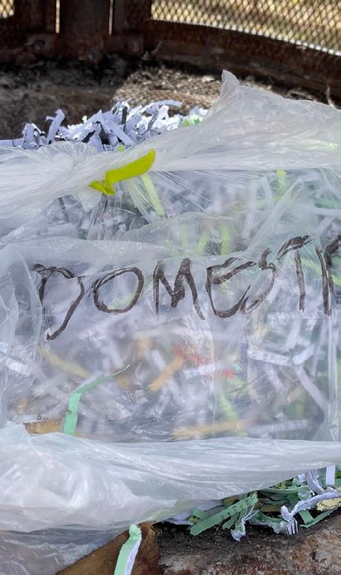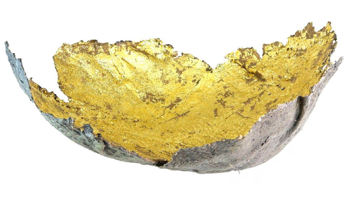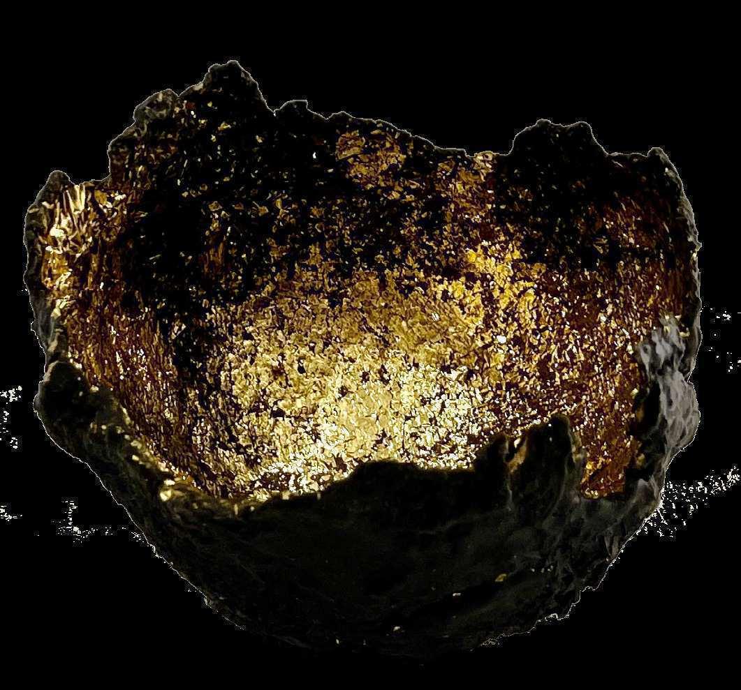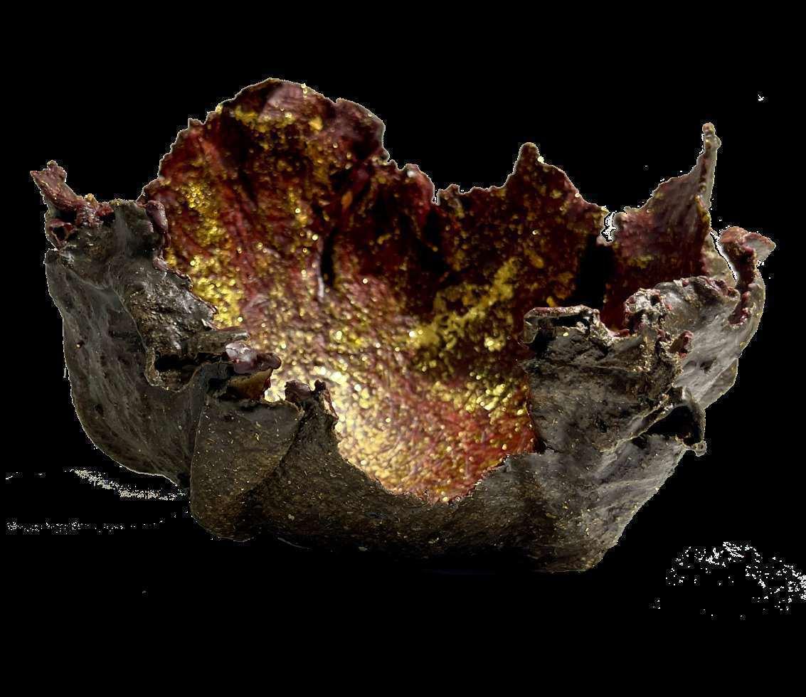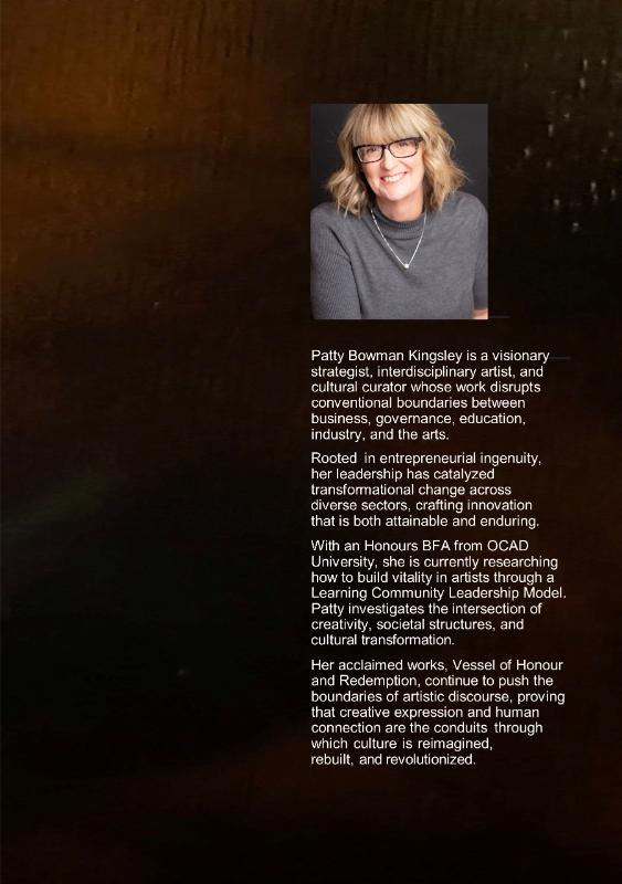 This fragile bowl, comprised of building ash, beeswax, and recycled paper, sealed inside with scarlet oil-infused damar varnish with a rubbed gold leaf finish, re ects the fragility of redemption in our lives and the Glory of God released in each of us. Our faith perspectives may vary, so I am grateful for your willingness to engage with this piece and what it might mean for you. Redemption resonates universally, whether through circumstances or actions. Within my faith, I find God’s Grace redemptive to my selfcenteredness, enabling me to love fully. For me, “…there’s no such thing as self-rescue, pulling [my]self up by your bootstraps. The cost of rescue is beyond our means, and even then it doesn’t guarantee Life forever, or insurance…” Psalm 49:7-9, The Message