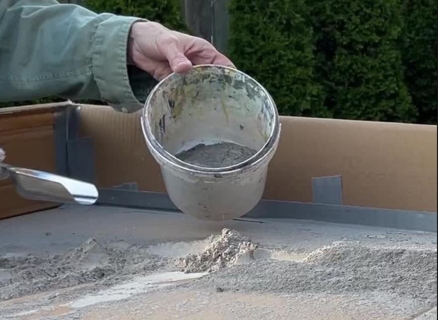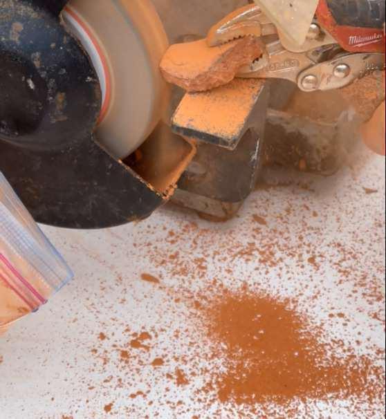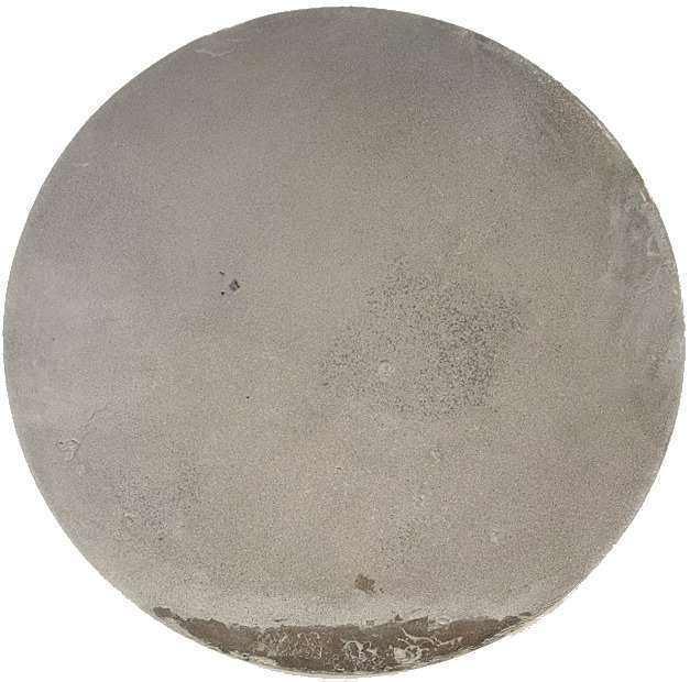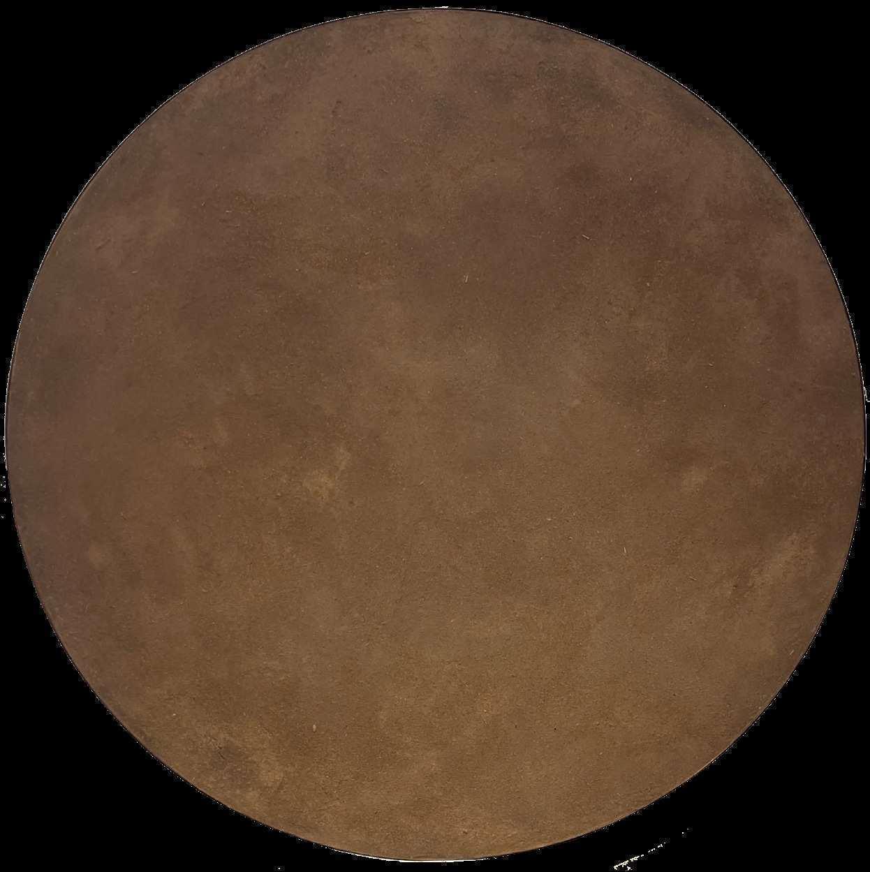 Ash, crushed red roof tile, dried lavender, pouring medium, and fixative on round birch panel with a rough aluminum edge 36”x1”
