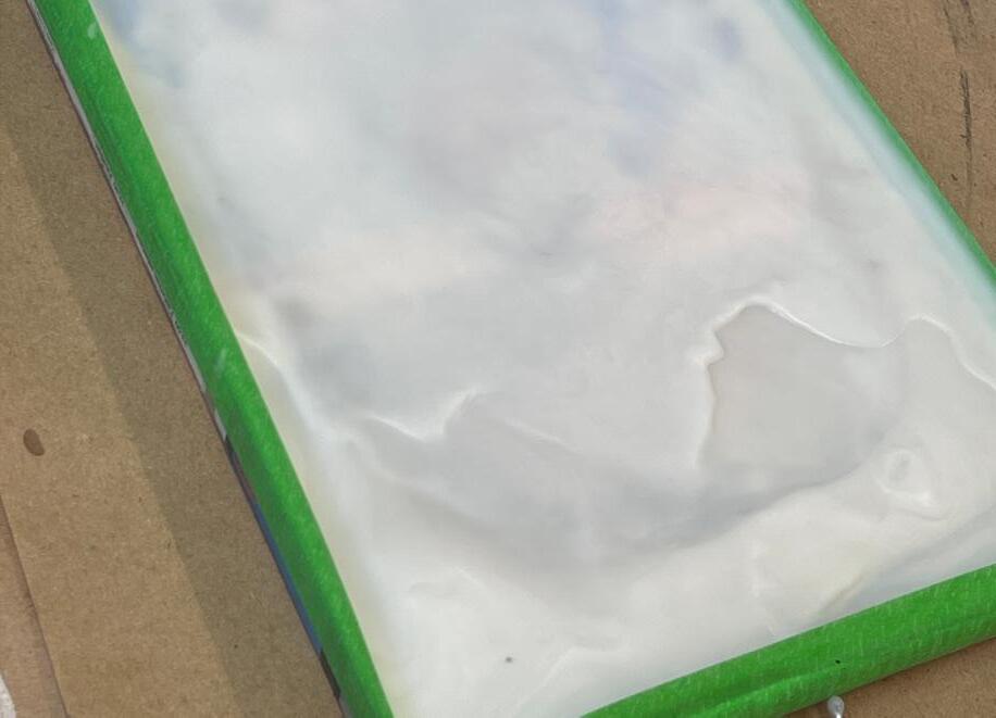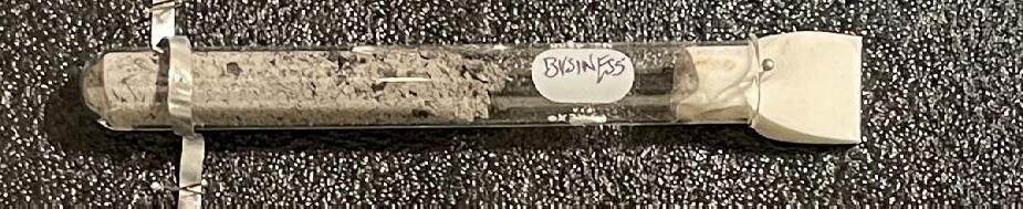 Business, travel, and life ash, encaustic, and powdered pigment on Lexan 12”x30”x1.5”