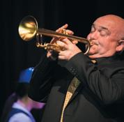 Congratulations to Alan Watters who has trained these younger ensembles so well. Following their performance, the crowd cheered as James Morrison entered the stage opening Big Band's first piece with a solo trumpet fanfare. The stage was awash with energy and action throughout the rest of the night. The Senior Dance Troupe joined the Big Band for their performance of “Bugle Call Rag” where at times James Morrison was performing with the Big Band or performing as a soloist, or the dance troupe all dressed in gold were swinging away in what stage was left. This piece was followed by a gangster style piece called "Hey Pachuco" once again featuring solos by James Morrison and Aurelia Bergin on the drums as well as the older of the Senior Dance Troupes performing other variants of swing dancing.