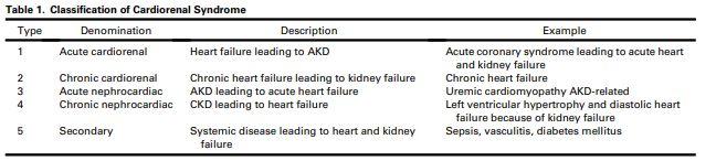 Theoverlapofcardiovascularandkidneydiseaseextendsacrossseveralinterfaces.Thisarticlesummarizesthedifferent types,pathophysiology,biomarkersandmanagementofcardiorenalsyndromes.