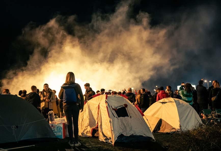 ku – zagrljaj kao znak solidarnosti, zapravo na protestima oni imaju snagu bunta – poruka koja se šalje je: zajedno smo, mi smo, da delimo više od stavova, više od zahteva, delimo energiju, delimo vrednosti i baš kao što to biva u kriznim vremenima – eto nas tu