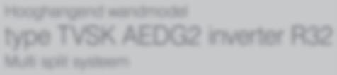 4 model type koudemiddel koel / verw. vermogen pagina Hooghangend wandmodel ASYG07-14KMCC AOYG07-14KMCC R32 2,0 - 4,2 / 2,5 - 5,4 kW 10 ASYG18-24KMTB AOYG18-24KMTA R32 5,2 - 7,1 / 6,3 - 8,0 kW 12 ASYG30-36KMTA AOYG30-36KMTA R32 8,0 - 9,4 / 8,8 - 10,1 kW 14 Hooghangend wandmodel Design ASYG07-14KGTB AOYG07-14KGCA R32 2,0 - 4,2 / 2,5 - 5,4 kW 16 ASYG07-14KETA AOYG07-14KETA R32 2,0 - 4,2 / 2,5 - 5,4 kW 18 Hooghangend wandmodel Low budget ASYG07-12KPCA AOYG07-12KPCA R32 2,0 - 3,4 / 2,5 - 3,8 kW 20 ASYG18-24KLCA AOYG18-24KLCA R32 5,2 - 7,1 / 6,3 - 8,0 kW 22 Cassette model 600-600 AUXG09-18KVLA AOYG09-18KBTB R32 2,5 - 5,2 / 3,2 - 6,0 kW 26 AUXG22-24KVLA AOYG22-24KBTB R32 6,0 - 6,8 / 7,0 - 7,5 kW 28 Cassette model 600-600 Eco AUXG09-18KVLA AOYG09-18KATA R32 2,5 - 5,2 / 3,2 - 6,0 kW 30 AUXY22-24KVLA AOYG22-24KATA R32 6,0 - 6,8 / 7,0 - 7,5 kW 32 Cassette model 900-900 Round flow AUXG18-30KRLB AOYG18-30KBTB R32 5,2 - 8,5 / 6,0 - 10,0 kW 34 AUXG36-54KRLB AOYG36-54KBTB R32 9,5 - 13,4 / 10,8 - 15,5 kW 36 Cassette model 900-900 Round flow 400V AUXG36-54KRTA AOYG36-54KRTA R32 9,5 - 13,4 / 10,8 - 15,5 kW 38 Cassette model 900-900 Round flow Eco AUXG18-30KRLB AOYG18-30KATA R32 5,2 - 8,5 / 6,0 - 10,0 kW 40 AUXG36-54KRLB AOYG36-54KATA R32 9,5 - 13,4 / 10,8 - 15,5 kW 42 Cassette model 900-900 Round flow Eco 400V AUXG36-54KRLB AOYG36-54KQTA R32 9,5 - 13,4 / 10,8 - 15,5 kW 44 Satelliet model Slimduct ARXG09-18KLLAP AOYG09-18KBTB R32 2,5 - 5,2 / 3,2 - 6,0 kW 46 Satelliet model Slimduct Eco ARXG09-18KLLAP AOYG09-18KATA R32 2,5 - 5,2 / 3,2 - 6,0 kW 48 Satelliet model Standaard ARXG22-36KMLA AOYG22-36KBTB R32 6,0 - 9,5 / 7,0 - 10,8 kW 50 ARXG45KMLA AOYG45KBTB R32 12,1 / 13,5 kW 52 Satelliet model Standaard 400V ARXG36-45KMLA AOYG36-45KRTA R32 9,5 - 12,1 / 10,8 - 13,5 kW 54 Satelliet model Standaard Eco ARXG22-36KMLA AOYG22-36KATA R32 6,0 - 9,5 / 7,0 - 10,8 kW 56 ARXG45KMLA AOYG45KATA R32 12,1 / 13,5 kW 58 Satelliet model Standaard Eco 400V ARXG36-45KMLA AOYG36-45KQTA R32 9,5 - 12,1 / 10,8 -13,5 kW 60