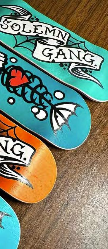Straight out of Rockford, Illinois, and now repping Freeport, Michael RockNelson is living proof that the spirit of skate culture is alive and kicking. At 31, this selfproclaimed kid at heart juggles a whirlwind life of tattooing, fingerboarding, skateboarding, and raising a family—all while running his own fingerboard deck brand, Solemn.fb.