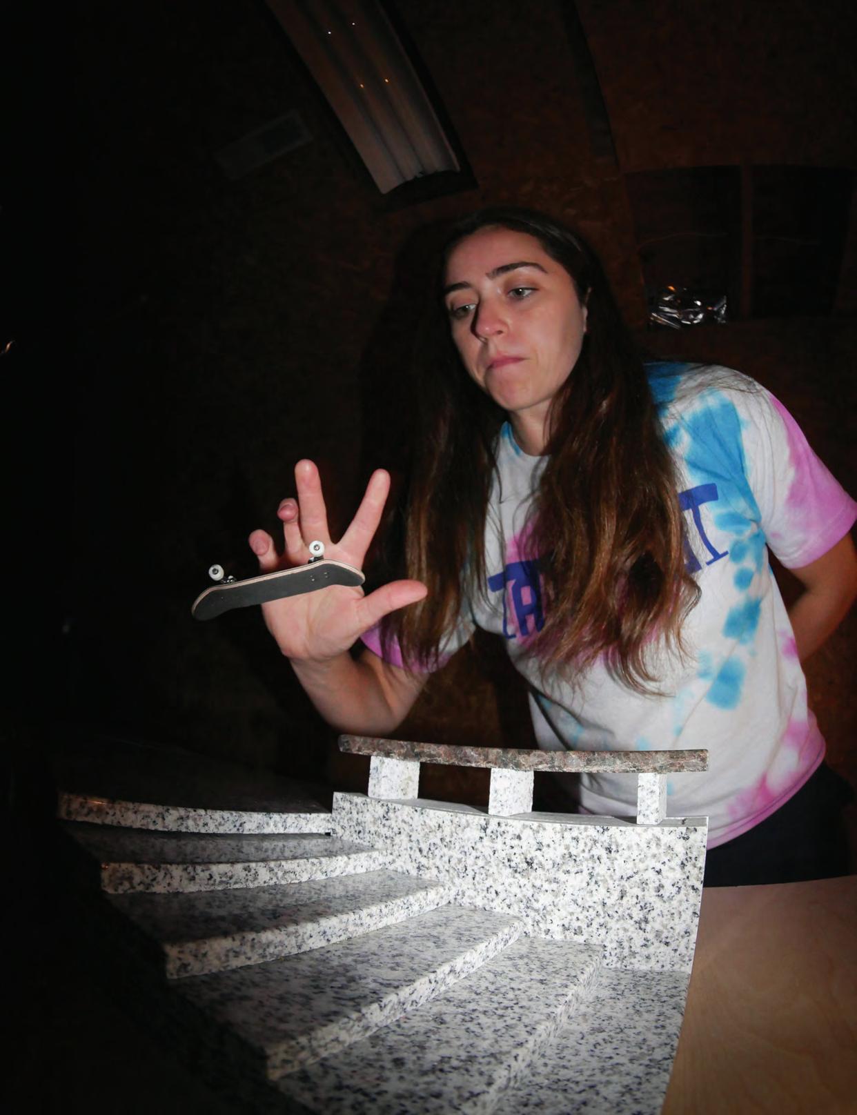 This summer, Lea’s doubling down on content. Working on a collabration with Devise. TP DECKS is releasing a new symmetrical mold. Expect more DIY tutorials, project builds, and sneak peeks behind the scenes at TP. She’s seeking to work with creative designers on new deck graphics. She’s always tweaking shapes, testing materials, and keeping it real for the next generation of fingerboarders.