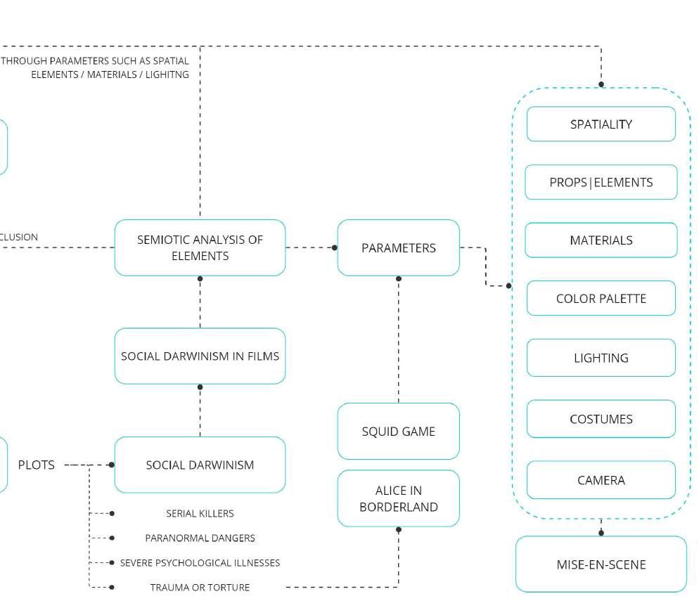 The study will focus on a selection of psychological thrillers that explore Social Darwinism as a theme, including films such as “Squid game” and “Alice in Borderland”. These films represent a range of approaches to exploring Social Darwinism, from more subtle and nuanced representations to more overt and explicit explorations of the theory. In conclusion, this study will provide insights into the role of spatial elements in psychological thrillers, and the ways in which these elements can be used to reflect the theory of Social Darwinism.