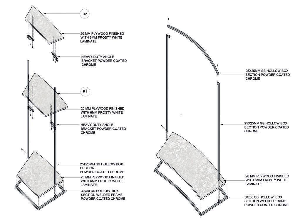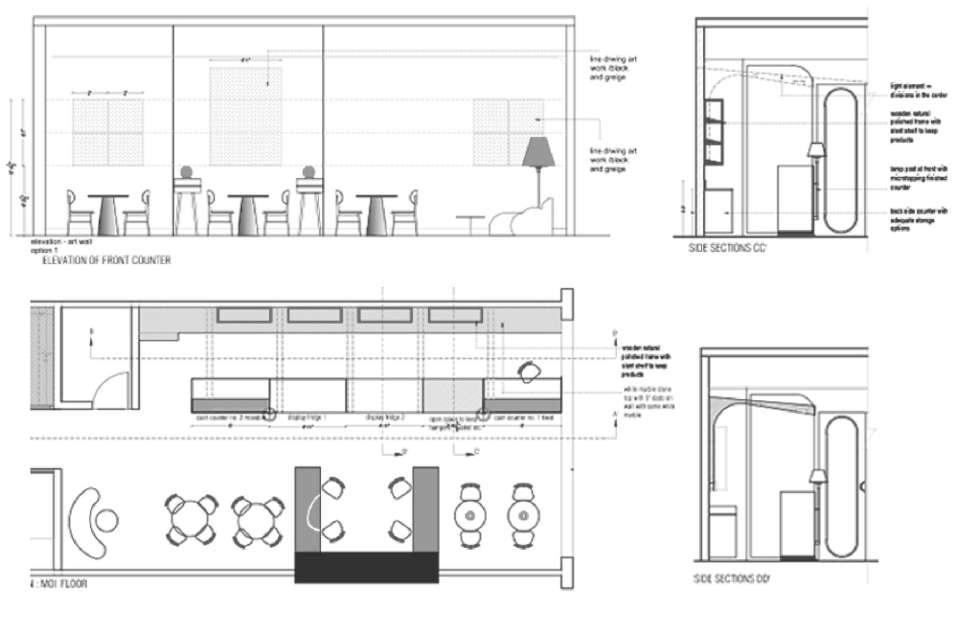 FURNITURE OR FIXTURE DETAILS: a part of set of working drawings showing the details and materails of the fixture